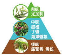 前味:尤加利/中味:甜橙、丁香、海洋香氛